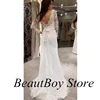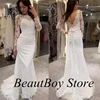 Robe De Mariée Vintage en dentelle, manches longues, dos en V, ravissante, col rond, avec petit Train, pour fête De mariage, 2022