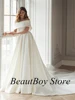 Robe De Soirée De Mariage en Satin, ligne a, épaules dénudées, col bateau, Simple, robes De mariée