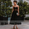 Robe de soirée en Tulle noire Simple, sans bretelles, longueur cheville, élégante, coupe trapèze, robe de bal pour femmes, sur mesure
