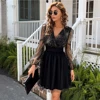 Robe de Cocktail en Satin, manches longues, Illusion, col en v, paillettes, Sexy, Mini, robe de soirée, boîte de nuit, 2022