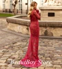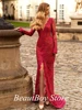 Robe de soirée en dentelle à manches longues pour femmes, tenue spéciale, Sexy, col en V, fente latérale, robes de Cocktail