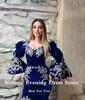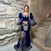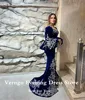 Verngo – robe de soirée en velours bleu Royal, style sirène, manches longues, avec appliques, fente latérale, pour femmes arabes