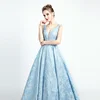 Robe De soirée De luxe, Sexy, tenue De soirée De standing, Maxi, bleu ciel, dubaï, col en V, dos nu, perles De cristal, 5133