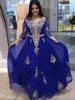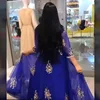 LORIE — Robe de soirée caftan pour femme, tenue de bal, bleue royal, occasions spéciales, manches longues 3/4, avec appliques en dentelle, style musulman arabe,