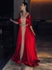 Lorie – robe de soirée en Satin rouge, caftan marocain, en dentelle dorée, demi manches, arabie saoudite, pour occasions spéciales, sur mesure