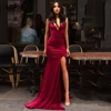 Lorie – robe de soirée en Satin bordeaux, tenue de soirée de forme sirène, sans manches, col en v, dos nu, grande taille, 2020