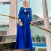 LORIE – robe de soirée en mousseline de soie bleu Royal, élégante, longue, Simple, à manches longues, longueur au sol, sur mesure, 2020