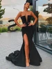 LORIE – robe de soirée de forme sirène en Satin noir, Sexy, col en v, longue, longueur au sol, avec fente, grande taille, 2020