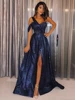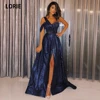 LORIE – robe longue de soirée, tenue de soirée de standing, grande taille, bleu marine, paillettes, manches une épaule dénudée, paillettes, 2021