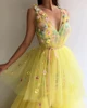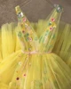 LORIE – robe de bal jaune à fleurs 3D, longue, col en Double V, sans manches, robe de soirée formelle à plusieurs niveaux, ligne a, robe de plage, princesse