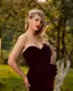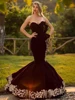 LORIE – robe de soirée sirène en dentelle dorée, tenue de soirée de standing, col en cœur, bordeaux, grande taille, avec des applications, en velours