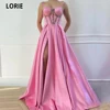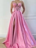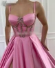LORIE – robe de bal en Satin rose, tenue de soirée formelle, bretelles Spaghetti, fente haute, cristaux, 2020