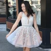 LORIE – robe de Cocktail de forme trapèze, robe courte, col en V, dentelle appliquée, ceinture perlée, cristal, grande taille, 2020