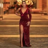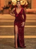 LORIE – robe de soirée de forme sirène, robe longue, asymétrique épaule dénudée, col en V profond, paillettes, bordeaux, grande taille