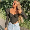 Macheda – t shirt manches longues bouffantes à col carré pour femme, vêtement élégant, Slim, à la mode, de rue, nouvelle collection printemps 2021