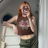 T shirt à manches courtes et col rond pour femme, haut court imprimé Vintage, marron, Streetwear, à la mode, été, Y2K 90s, 2022