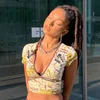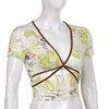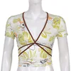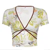 Chemisier à manches courtes pour femmes, col en v, Slim, mignon, bébé, esthétique, Patchwork