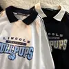 T shirt col POLO Vintage avec lettres imprimées, surdimensionné, pour femmes et adolescentes, Harajuku, Kawaii, printemps