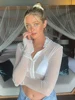 Dfllives – T shirt à manches longues pour femme, vêtement féminin Transparent, couleur unie, chemisiers à la mode, Sexy, Club, printemps, Slim, nouveau, 2022