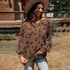 Chemise à imprimé léopard pour femme, vêtement d'extérieur, porté à même la peau, col en v, ample, décontracté, pull à manches longues, nouveau Style, automne et hiver, 2022