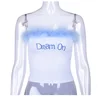 Haut court Sexy à épaules dénudées pour femmes, sans bretelles, avec plumes, en fourrure, Patchwork, extensible, avec lettres imprimées, t shirt, 2022