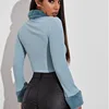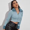 T shirt à manches longues pour femme, vêtement Vintage, côtelé, en fourrure, avec fermeture éclair, style décontracté