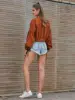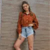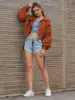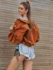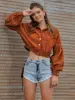 Veste courte en velours côtelé pour femme, manteau court à manches longues, avec poches à boutons, vêtements d'extérieur, automne et hiver