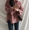 Manteau chemise en velours côtelé pour femmes, manches longues, taille large, col rabattu, veste courte, Harajuku décontracté, poche