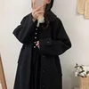 Manteau mi long en laine pour femme, noir, épais, épais, Style bcbg coréen, rétro, polyvalent, populaire, nouvelle collection hiver 2021