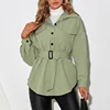 Chemise manches longues à revers et boutonnage simple pour femme, vêtement de sport décontracté avec ceinture, couleur unie, tendance, nouvelle collection automne 2021