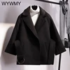 WYWMY – manteau en laine pour femme, veste courte pour étudiant, élégante, Camel, manches longues, épais et chaud, mélange de laine, mode automne hiver