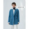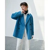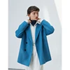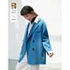 ZIQIAO – costume court d'hiver pour femmes, manteau en laine Double face, col croisé, veste droite en cachemire bleu