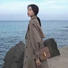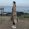 Trench Coat de Style coréen pour femmes, manteau à carreaux Long, Double boutonnage, ceinture surdimensionnée, ample, vêtements d'extérieur avec rabats tempête
