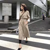 Trench coat Long avec ceinture pour femme, vêtement d'extérieur ample, coupe vent, Streetwear, printemps, 2021