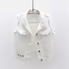 Gilet en Denim blanc et noir pour femme, gilet court sans manches, mode printemps automne 2021