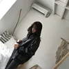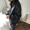 Manteau de printemps en Faux cuir pour femme, veste de motard rouge et blanc, col rabattu, vestes de moto en PU, vêtements d'extérieur amples
