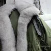 Manteau en duvet de canard blanc pour femme, veste surdimensionnée, col en vraie fourrure de renard, manteau de marin épais, vert armée, pardessus à la mode, 90%