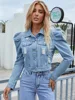 SRUBY Gigot – veste en jean déchiré à manches bouffantes pour femme, veste courte en Denim, poches à boutons, manteau Vintage, Streetwear d'hiver, vêtements d'extérieur