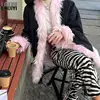 Cardigan Grunge à manches longues pour femme, veste d'hiver, manteaux de printemps, Vintage, garniture en fourrure, vêtements d'extérieur noirs à la mode, 2021
