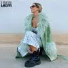 Veste en cuir PU à manches longues avec ceinture et lacets, manteaux longs en Patchwork de fourrure solide, à la mode, décontracté, printemps, 2022