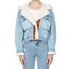 Veste courte en denim laine d'agneau pour femme, vêtement chaud épais à simple boutonnage, à la mode, personnalité, nouvelle collection hiver 2021
