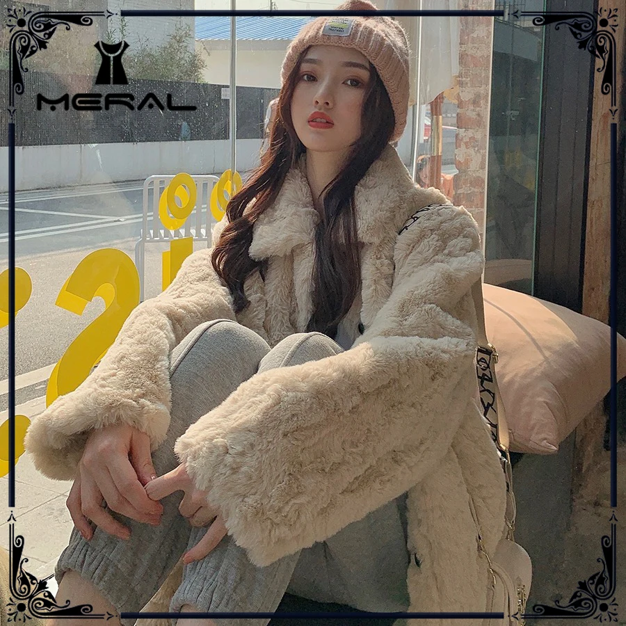 MERAL – manteau en fourrure d'agneau et de lapin artificiel pour femme, manteau de haute qualité, luxueux, revers ample, épais et chaud, grande taille, hiver