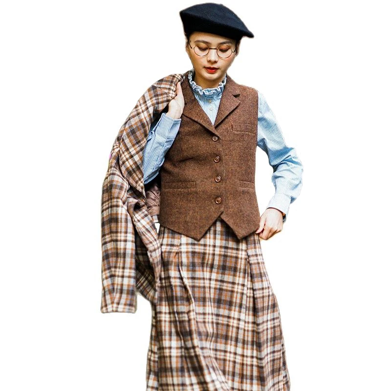 Gilet en laine à chevrons pour femmes, chaud, décontracté, à revers