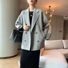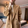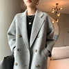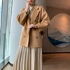Veste de costume en laine à carreaux pour femme, vêtement d'hiver, couleur unie, col double face