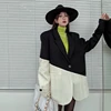 Blazer ample surdimensionné pour femmes, nouvelle mode coréenne à revers, couleur contrastée noir et blanc, printemps 2022
