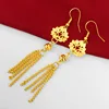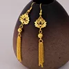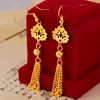 Boucles d'oreilles en forme de Lotus pour femmes, bijoux en or jaune 24k, nœud chinois, Vietnam, sable, goutte, cadeau de mariage, fiançailles, bijoux fins