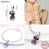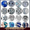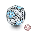 Breloques rondes en argent Sterling 925 pour femmes, fleurs bleues éblouissantes, adaptées aux bracelets Pandora originaux, fabrication de bijoux, nouvelle collection