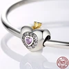 Perles d'amour en argent Sterling 100% 925 pour femmes, en Zircon rose, adaptées aux bracelets originaux de 3mm, fabrication de bijoux à la mode, bricolage