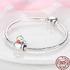 Breloques en argent Sterling 925, canard à bec jaune, avec nœud rose, adaptées aux bracelets et bracelets originaux de 3mm, fabrication de bijoux pour femmes, bricolage, nouveau