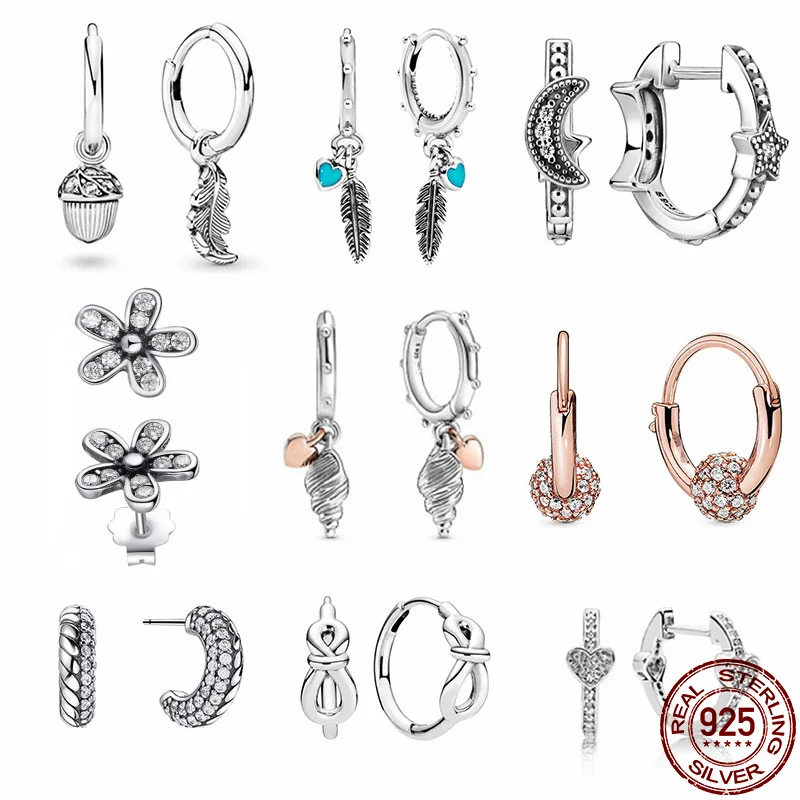 Boucles d'oreilles classiques en forme de cône de pin pour fille, bijoux en argent Sterling 100% 925 authentique, adaptés aux cadeaux d'anniversaire, 11 styles, tendance